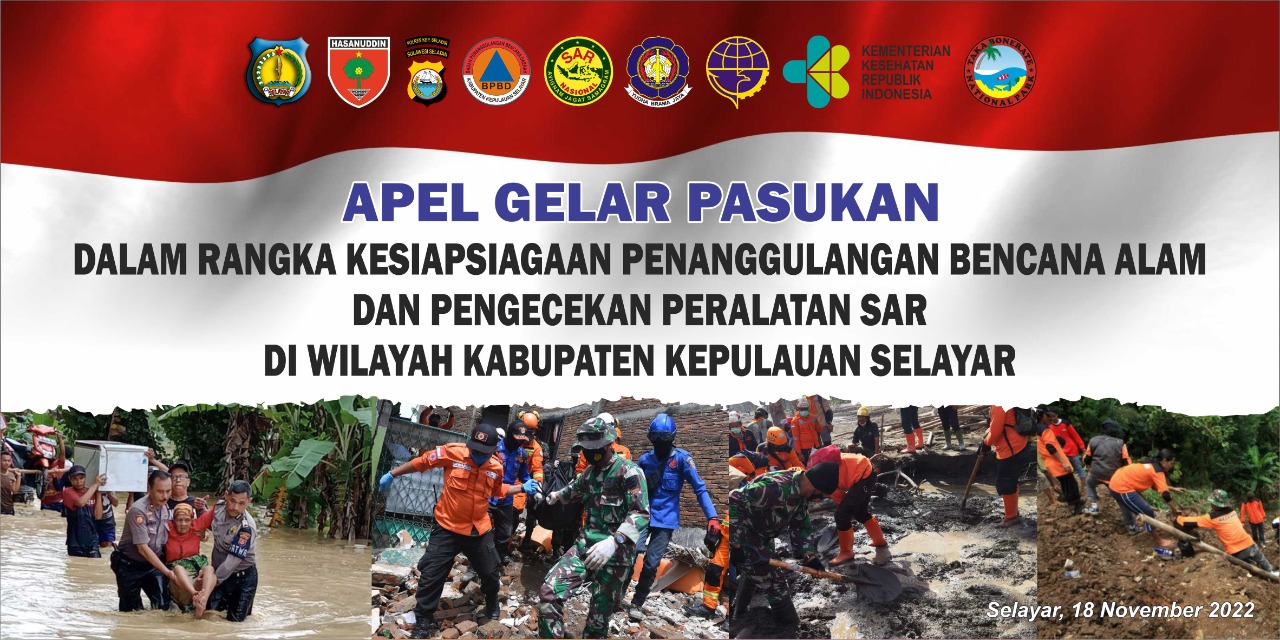 menghadapi cuaca rkstrim, BPBD melaksanakan apel gelar pasukan dalam rangka Kesiapsiagaan Penanggulangan Bencana dan pengecekan Peralatan SAR di wilayah Kab. Kepulauan Selayar pada hari Jum'at 18 November 2022 di Pelabuhan Rauf Rahman Benteng yang dihadiri oleh unsur Forkopinda dan stepholder terkait.
